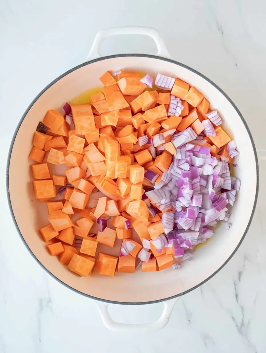 - Texture matters: For chunkier chili, cut sweet potatoes into 1-inch pieces; smaller cubes melt into the broth more