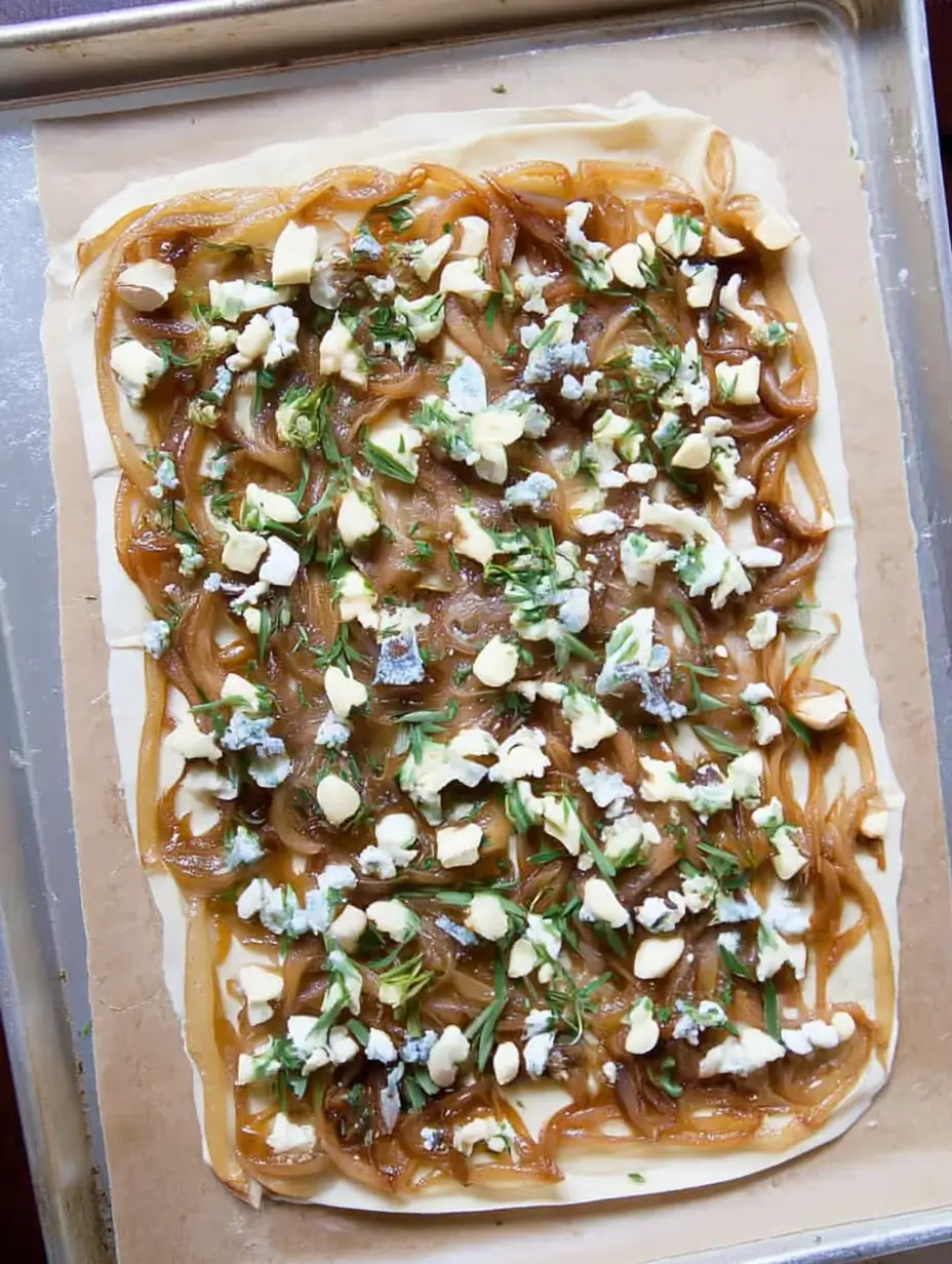 - Spread caramelized onions evenly over the crust.