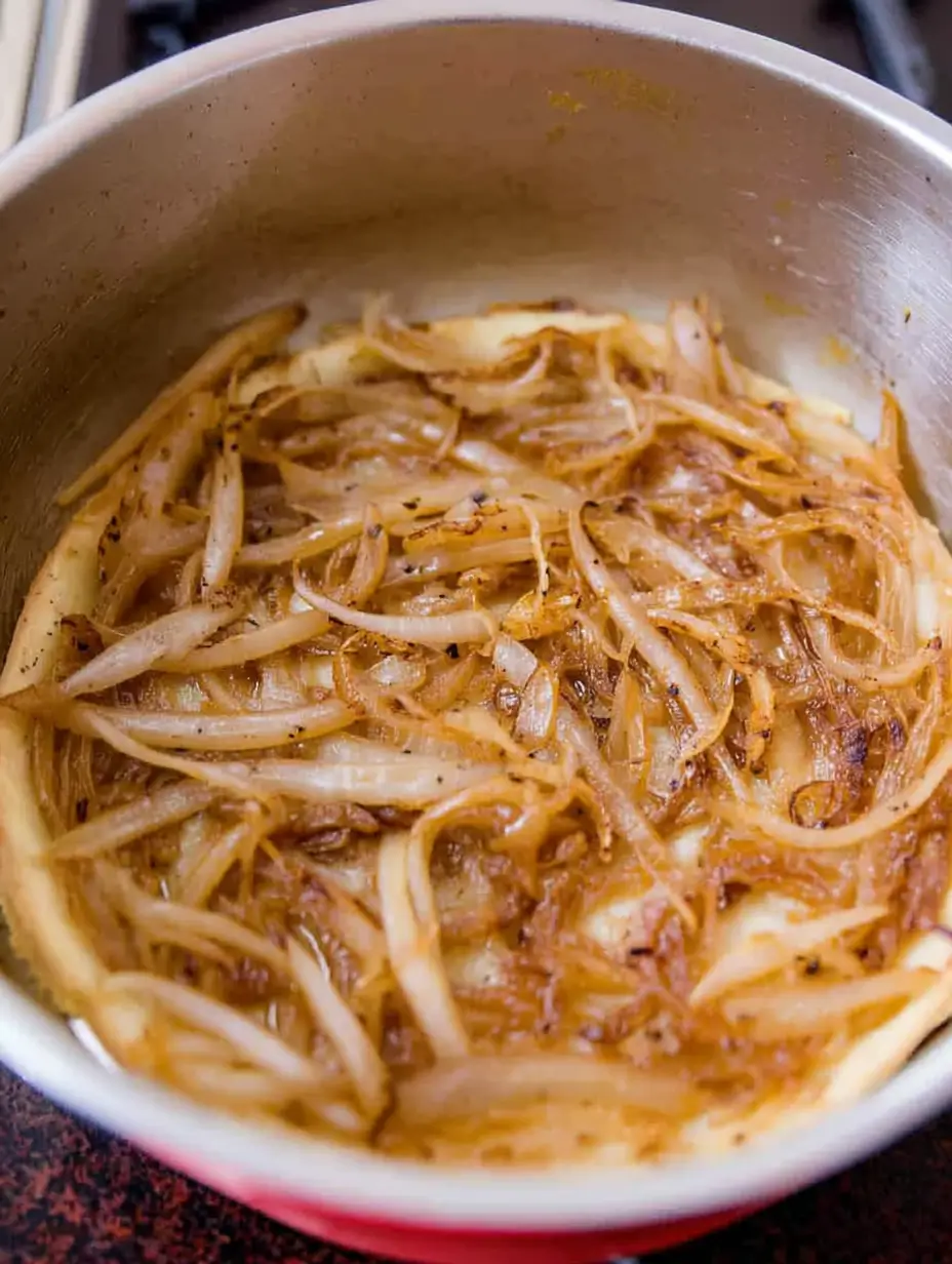 This is where the magic begins! In your large skillet, melt the butter with olive oil over medium heat. When it’s shimmering (but not smoking), add all those beautiful thinly sliced onions. Sprinkle in the sugar and salt – trust me, that tiny bit of sugar works wonders for caramelization.