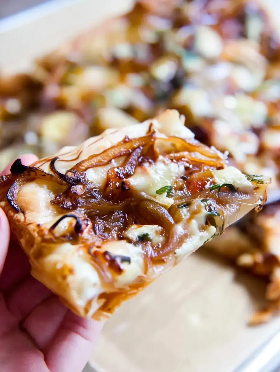 A savory caramelized onion tart with a flaky crust and rich, sweet onion filling.