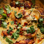 This one-pan wonder features tender chicken with crispy edges from a generous spice rub, nestled into a silky sauce where kale wilts perfectly into full-fat coconut milk, yellow curry paste delivers that sunny hue and flavor depth, and slivered shallots add sweet savoriness. Soy sauce and brown sugar balance the richness with umami and caramel notes, creating a gravy-like texture that’s spoonable and addictive. Minimal prep, maximum payoff – it’s dairy-free, naturally gluten-free, and versatile for any protein or veggie swap.