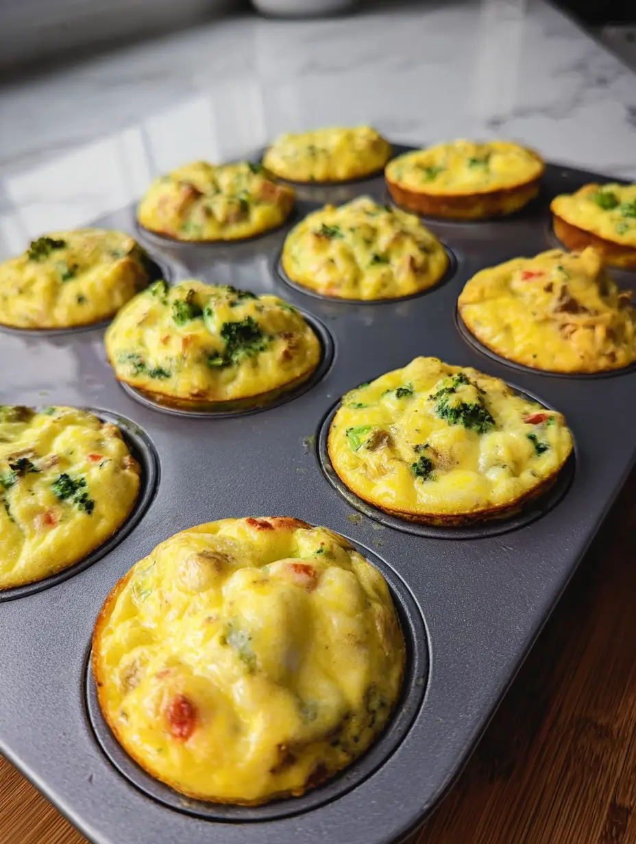 Here’s where the fun begins! Gently fold in all those chopped veggies – bell peppers, spinach, onion – whatever you’re using. Don’t overmix though, we want those colorful bits to stay visible. Now spoon the batter into your prepared muffin tin, filling each cup about halfway. They’ll puff up beautifully in the oven! Slide them in and set your timer for 20 minutes. You’ll know they’re done when the edges pull away slightly and the tops get those perfect golden spots. My oven sometimes needs an extra 2-3 minutes – just watch for that perfect color!