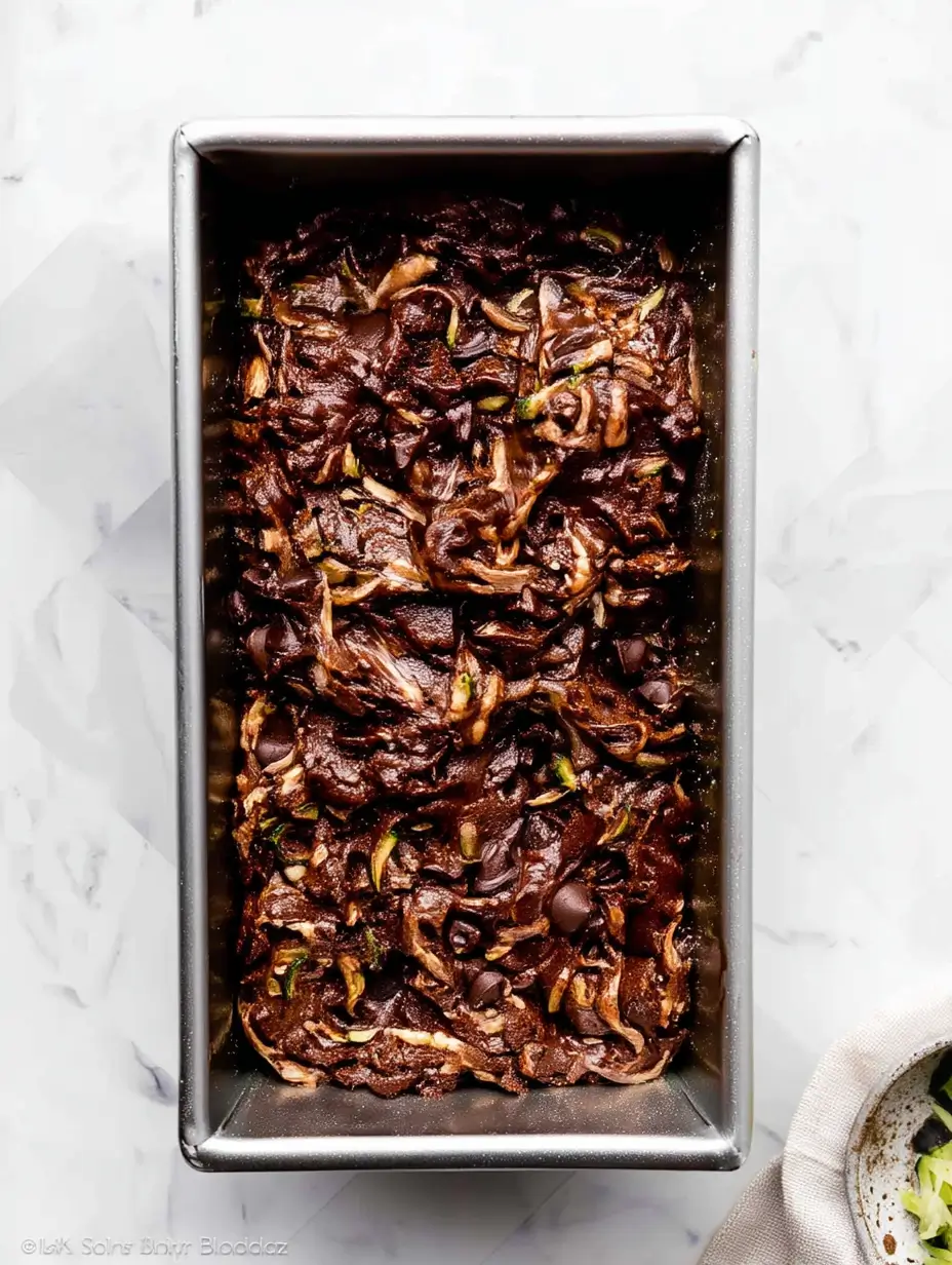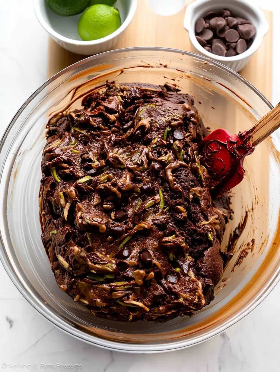 - Fold in grated zucchini and chocolate chips.