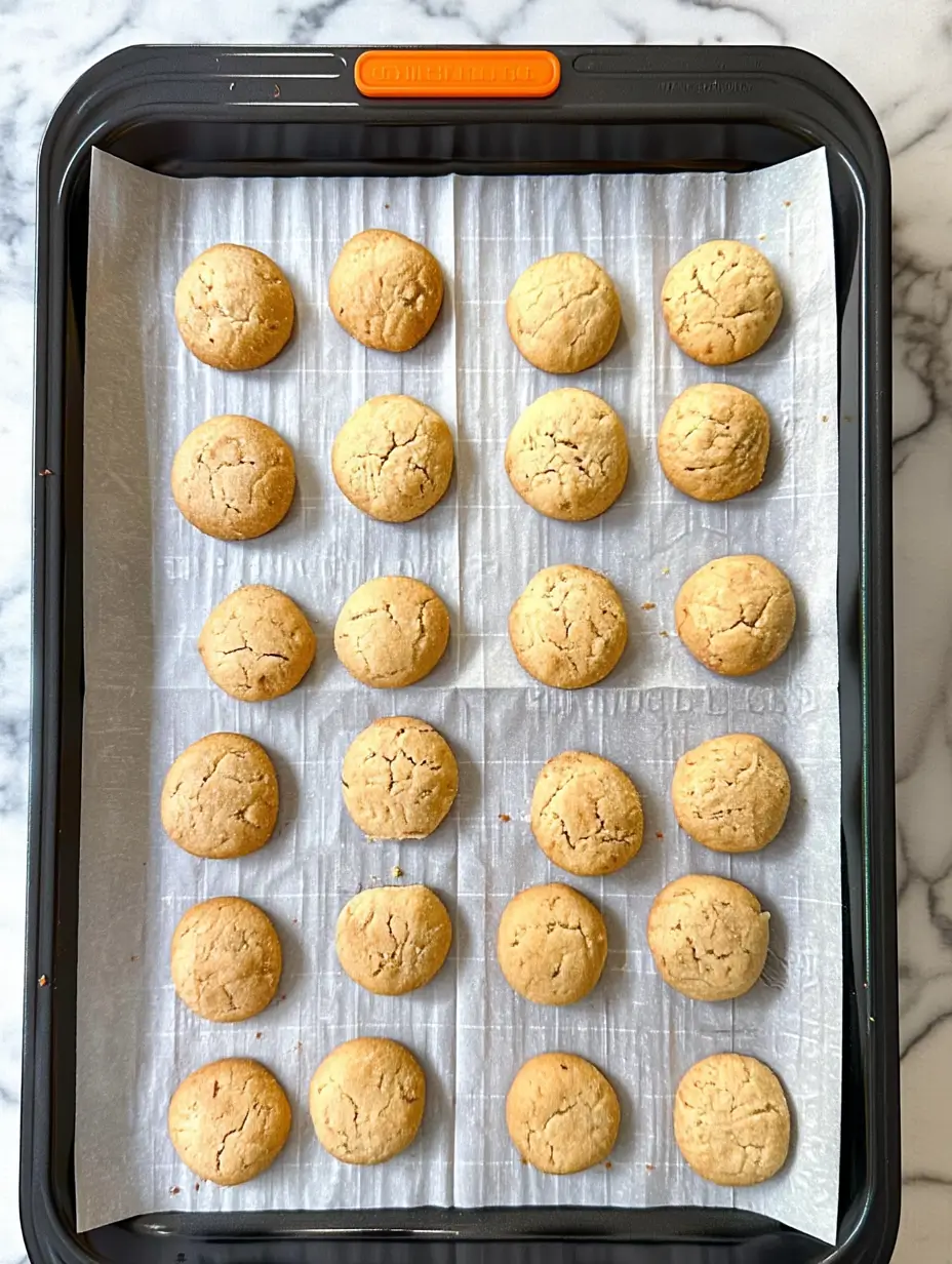 Time to shape your dough into 1-inch balls (I use a small cookie scoop for perfect uniformity). Arrange them on your parchment-lined baking sheet – they won’t spread much, so you can place them fairly close. Bake at 350°F until the bottoms are just lightly golden – about 12-15 minutes. Pro tip: They’ll continue cooking a bit as they cool, so take them out when they’re still slightly soft to the touch!