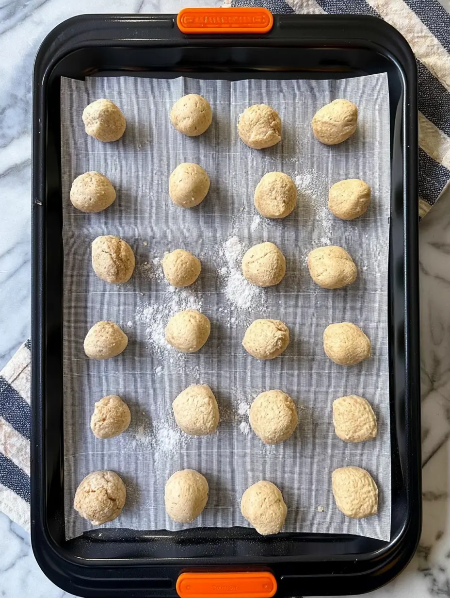 - Shape dough into 1-inch balls and place on the baking sheet.