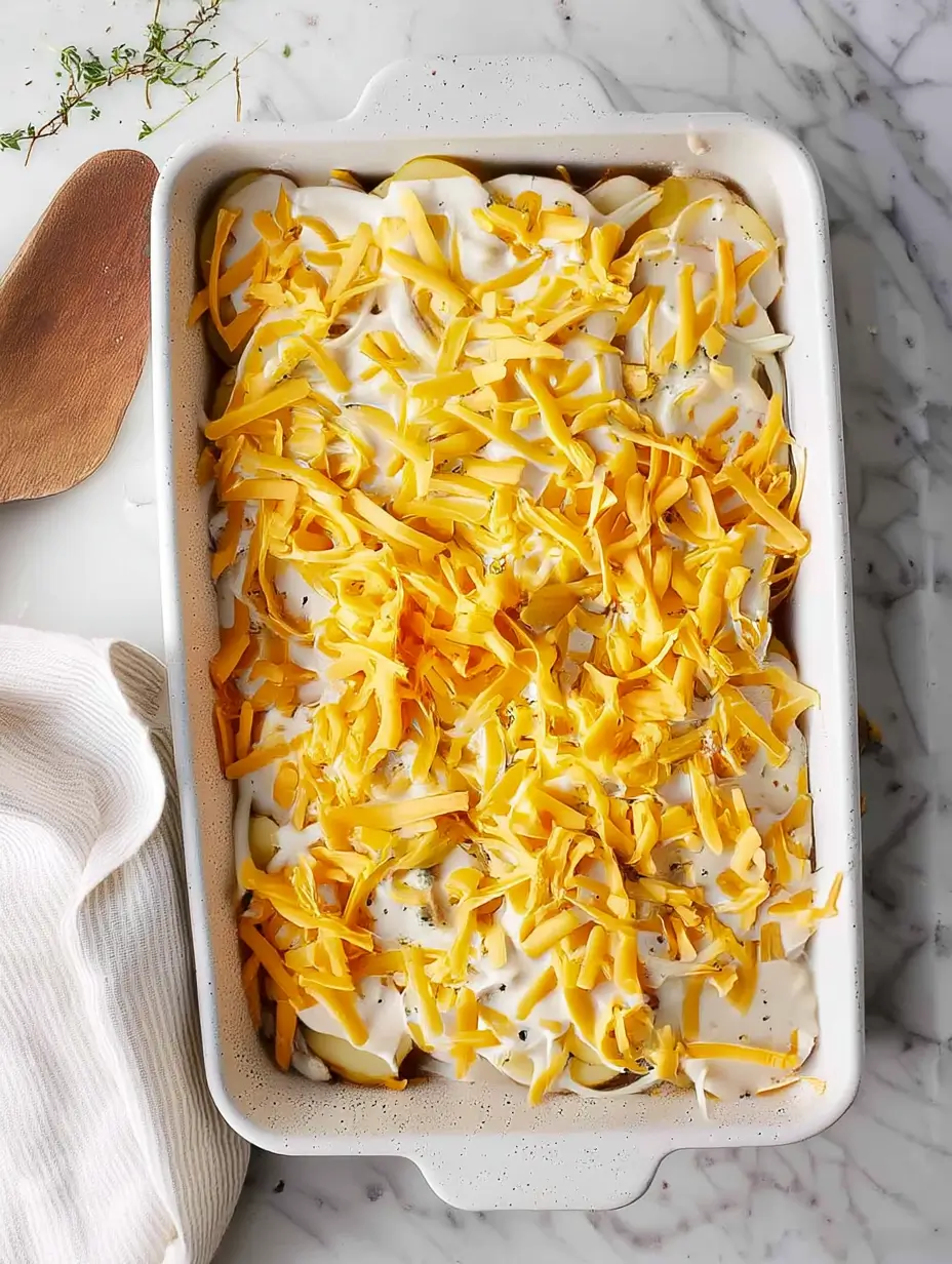 Cover tightly with foil (this keeps the moisture in) and bake at 375°F for 45 minutes. You’ll smell that garlicky goodness wafting through your kitchen! Then, uncover and bake another 15 minutes until the top gets that perfect golden crust. The real test? Slide a knife into the center – the potatoes should be tender with no resistance. Let it rest 10 minutes before serving (I know, the wait is torture!) so the sauce sets up beautifully.