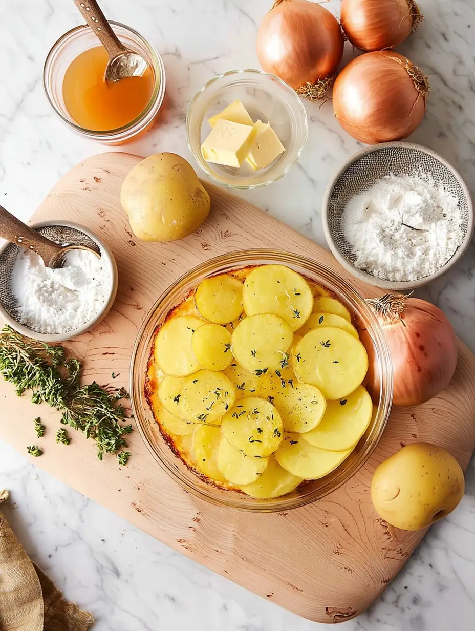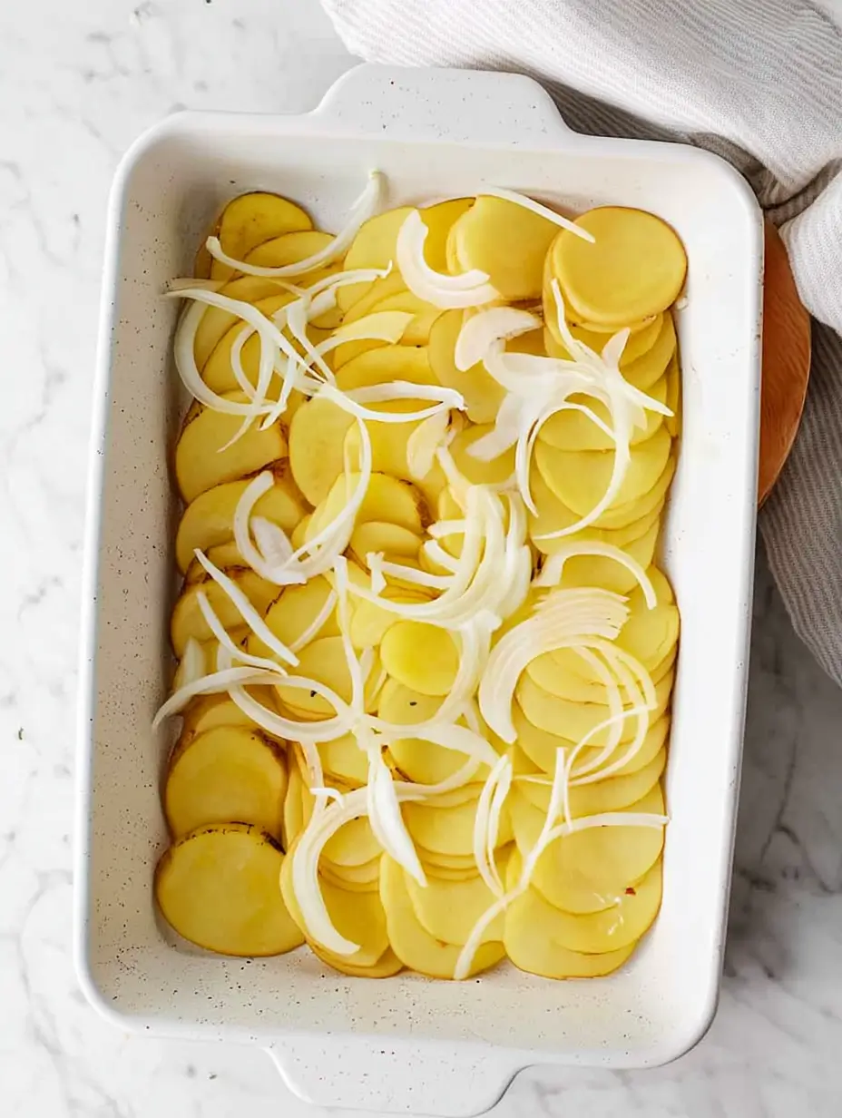 - 4 large russet potatoes – thinly sliced (about 1/8-inch thick) for even layers that cook perfectly