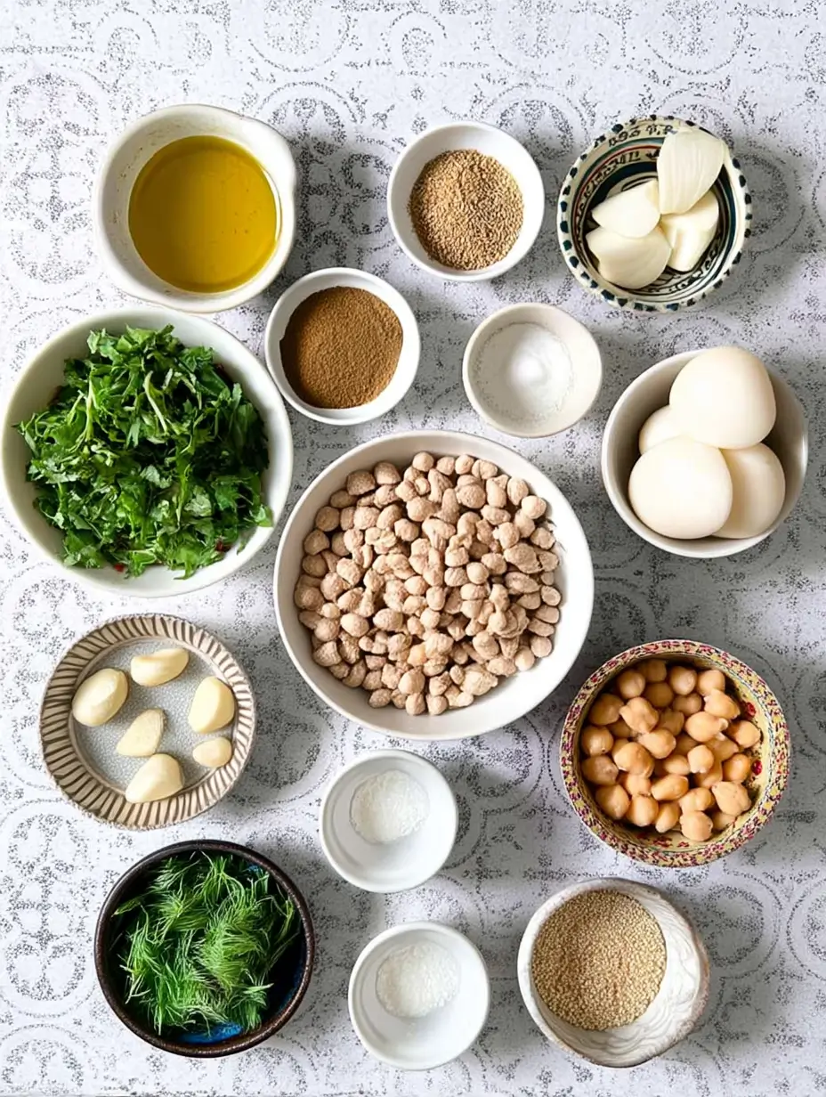 Okay, here’s the deal—you must start with dried chickpeas (none of that canned stuff!). Soak them overnight in plenty of water—they’ll triple in size, I promise. That’s the secret to getting that perfect falafel texture. Here’s what else you’ll need: