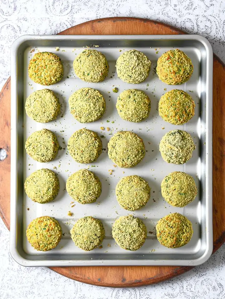 While your oven preheats to 375°F (190°C), grab your biggest baking tray—no need to grease it yet. Slice that bell pepper into strips, zucchini into 1/4-inch coins, and red onion into wedges. Scatter them across the tray like you’re creating a colorful mosaic. Drizzle with half the olive oil and give everything a quick toss with your hands. Now, take that gorgeous falafel mixture and form little patties (about 2 tablespoons each)—don’t pack them too tight! Nestle them right in with the veggies.