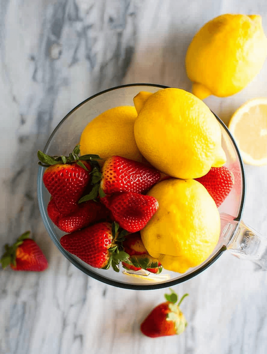 Grab 1 lb hulled strawberries, 6-8 lemons for 1.5 cups juice, 1-1.5 cups sugar, and 6-8 cups water. Ice and garnishes like mint elevate it. Here’s a breakdown table from favorites: