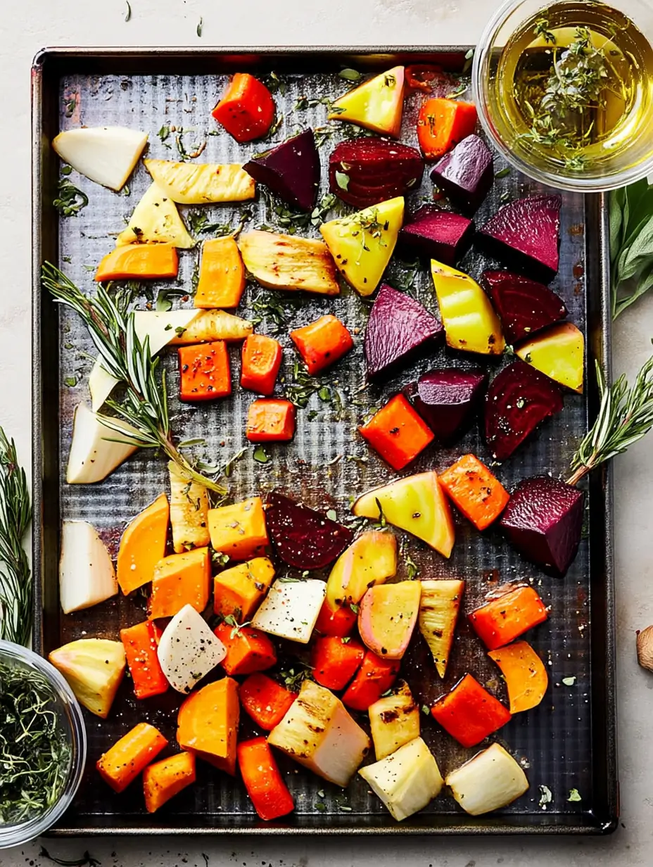 First things first – grab that cutting board and let’s chop! The key here is keeping everything roughly the same size so they cook evenly. I aim for 1-inch chunks for carrots and parsnips, slightly smaller for beets (they’re stubborn and take longer). Leave those sweet potato skins on – they crisp up beautifully. And don’t worry about perfect shapes – rustic is charming!