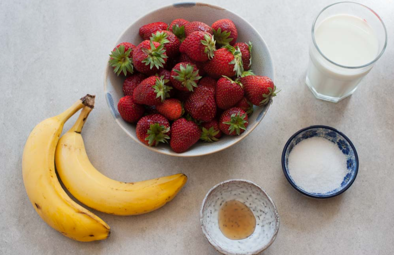 Pro tip: For ultra-thick, frosty texture without ice cream, freeze banana chunks 2-4 hours ahead (thaw 5 minutes if too hard). Freeze a handful of strawberries too, but not all – too much ice dilutes flavor. Defrost frozen store-bought berries first and include juices.